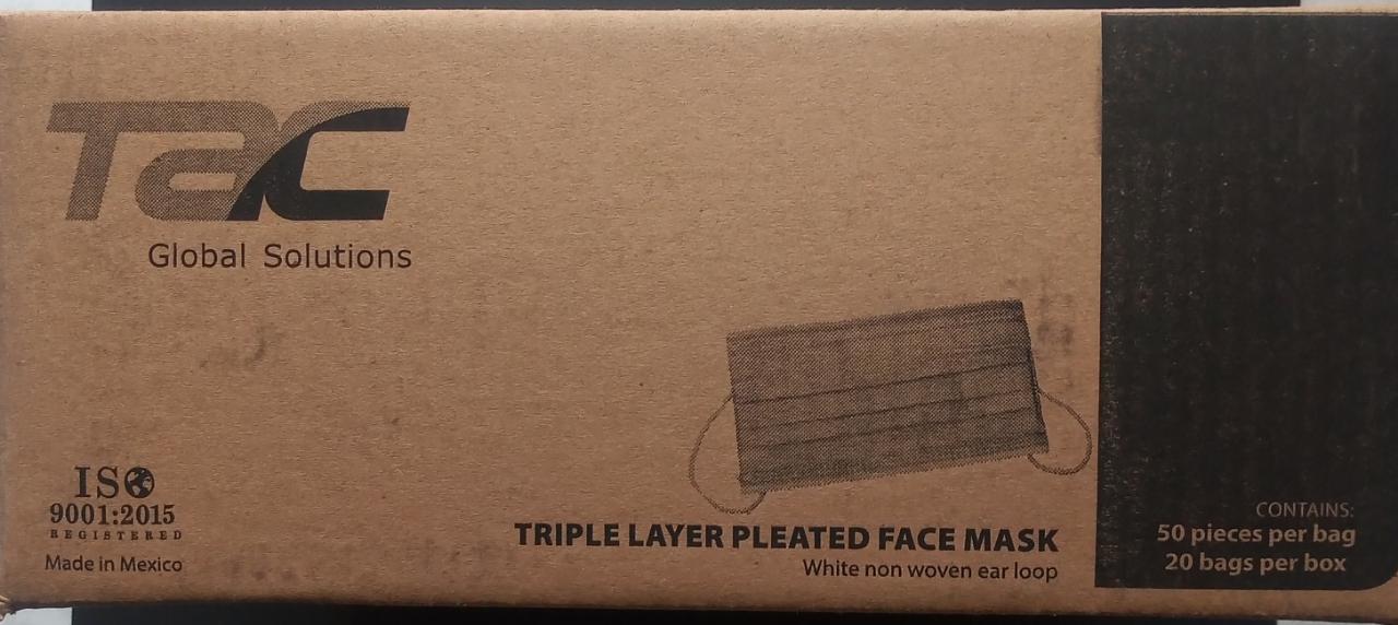 Cubreboca tricapa con ajuste nasal blanco c/50 paquete tac