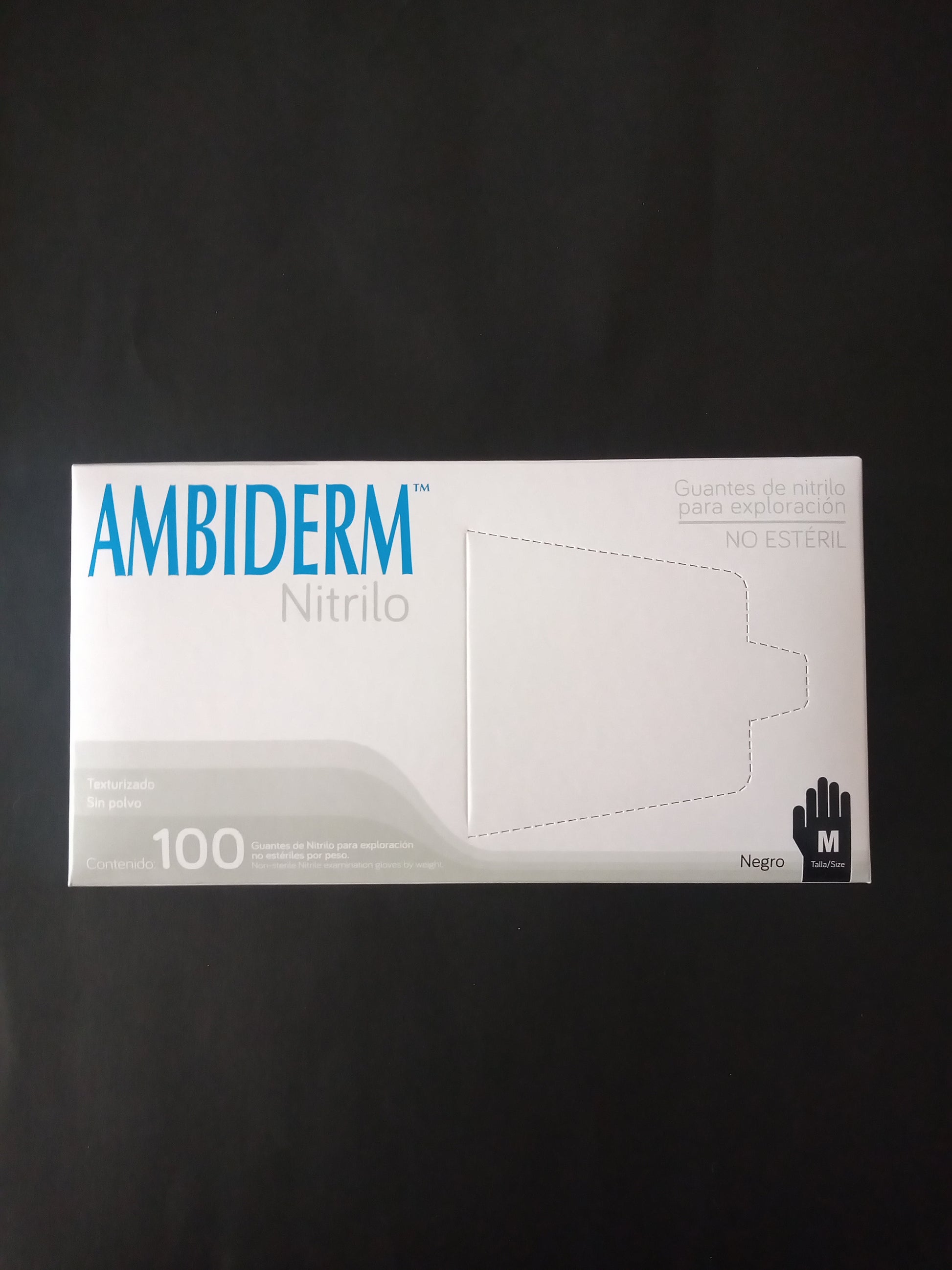 GUANTE DE NITRILO NEGRO MEDIANO AMBIDERM CAJA C/100
