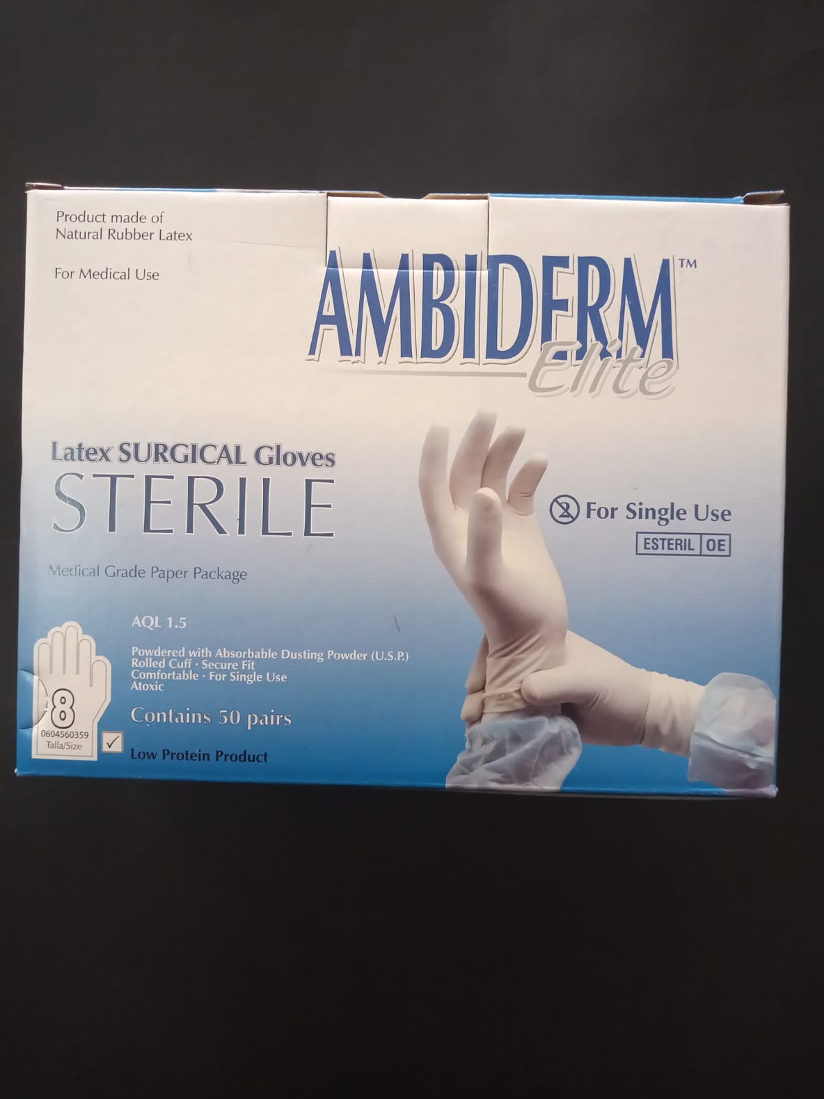 GUANTE PARA CIRUGIA ESTERIL ELITE AMBIDERM C/50 PARES CAJA TALLA:8